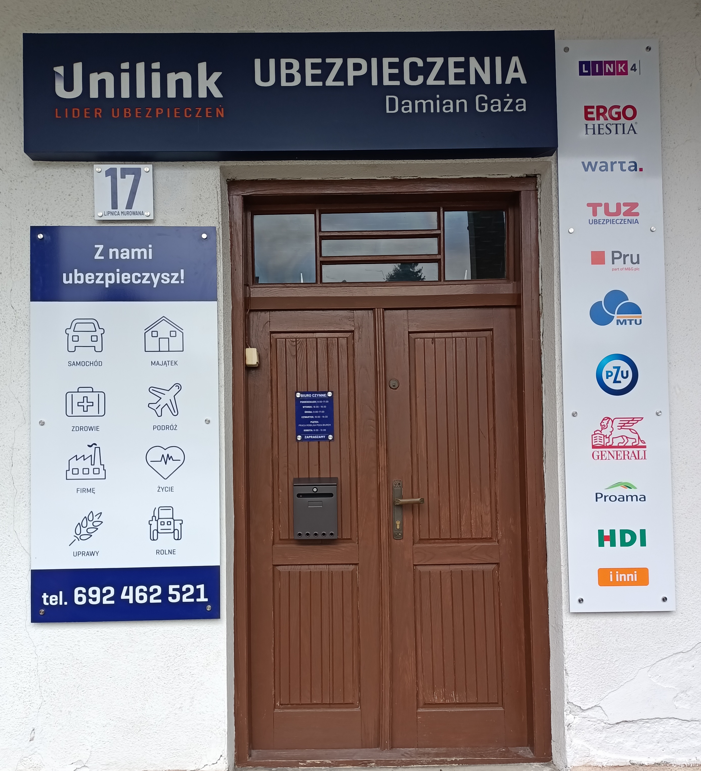 Wybierając Unilink S.A., możesz liczyć na personalne doradztwo i pełną obsługę, niezależnie od tego, czy jesteś klientem indywidualnym, czy prowadzisz własną działalność. W Unilink, oprócz standardowych pakietów samochodowych (OC i AC), oferujemy polisy na życie, ubezpieczenia nieruchomości i ubezpieczenia zdrowotne . Służymy pomocą rolnikom (ubezpieczenia upraw, gospodarstw), a także oferujemy ubezpieczenia korporacyjne. Dbamy o bezpieczeństwo Twojego dziecka w szkole (szkolne NNW), czy Twoje i całej Twojej rodziny podczas wyjazdów (ubezpieczenie turystyczne).